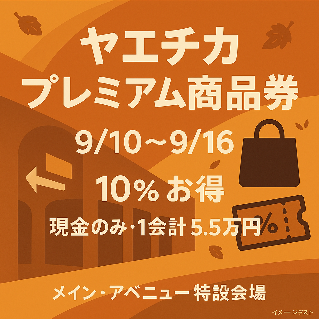 - ヤエチカ公式「9/10(水)~9/16(火) ヤエチカ プレミアム商品券」:告知ページ
